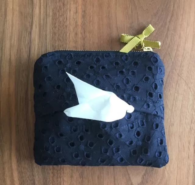 ネイビーのお花模様のレースを使ったポケットティッシュポーチです。 ※今まで使っていたサークルレースが在庫切れで、入手できないため、こちらのレースに切り替えました。 ポーチ部分には、替えのティッシュ・リップ・小さめのサニタリー用品などを入れていただけます。 化粧ポーチを持ち歩かないけど、ティッシュは必需品という方にぴったりだと思います。 リボンは、9色からお選びください。 リボン自体の幅は6ミリです。 (ジュエリーポーチに使用しているリボンより細いです) リボンは、ファスナー引き手に丸カンをつけて、丸カンに結びつけております。 結び目は解けないように接着しております。 〈寸法〉 縦 約11㎝ × 横 約13㎝ 厚み 約1.5㎝ (中が空の状態で) ティッシュ ポケットティッシュ ポーチ 花粉症 レース ネイビー ネイビーレース 選べるカラー セミオーダー プチギフト ギフト プレゼント 母の日 母の日プレゼント 母の日ギフト クリスマスギフト