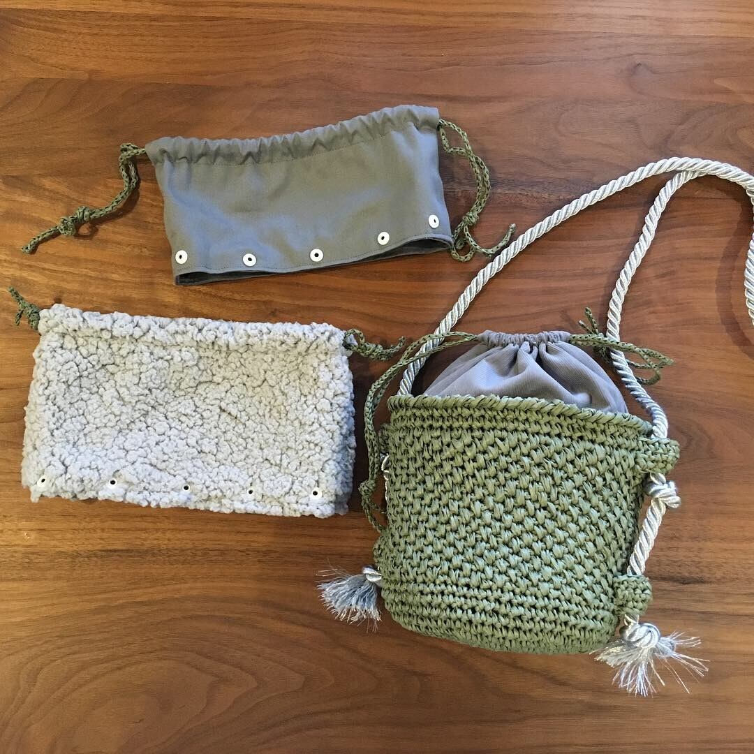 和紙のバッグ 和紙 ロープハンドル 巾着バッグ ななめがけバッグ ショルダーバッグ 着せ替え 着せ替えバッグ ボア コーデュロイ 秋冬バッグ かごバッグ 手編み かぎ針編みバッグ 編み物 かぎ編み かぎ編みバッグ