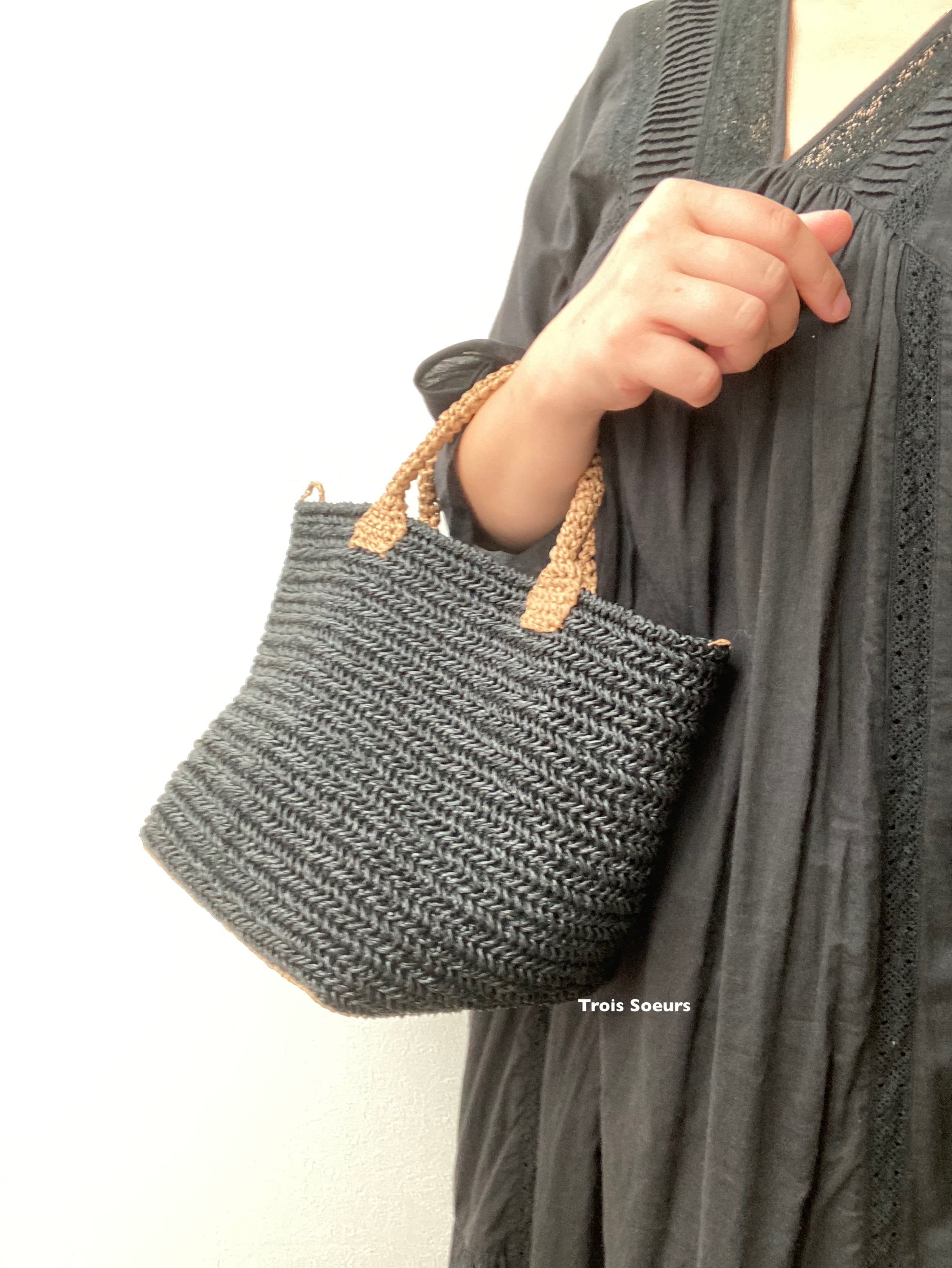 sasawashiという、和紙の糸で編んだかごバッグ。